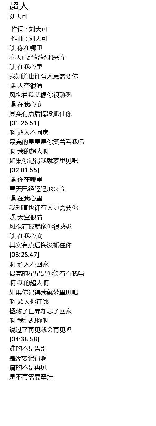| [04:03.47] | a chāo rén nǐ zài nǎ |
