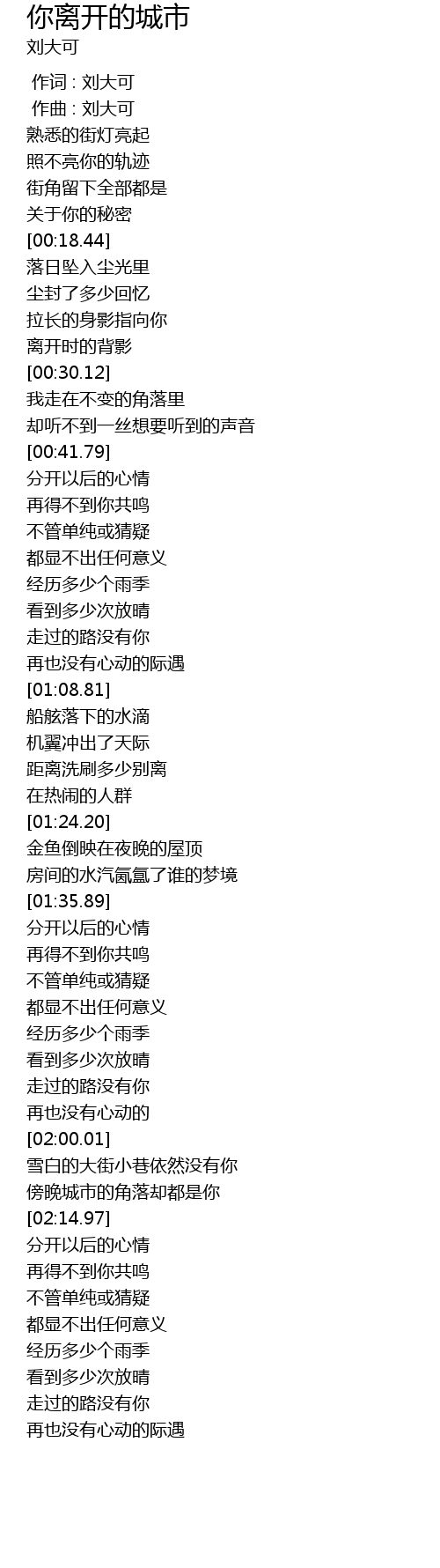 | [00:00.000] | 作词 : 刘大可 |