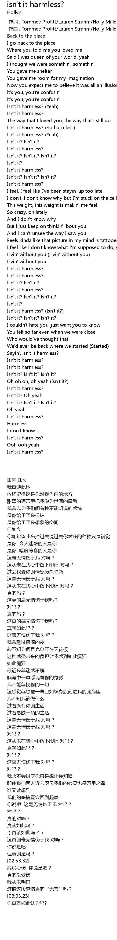 | [00:58.39] | Isn't it harmless? (Yeah) |