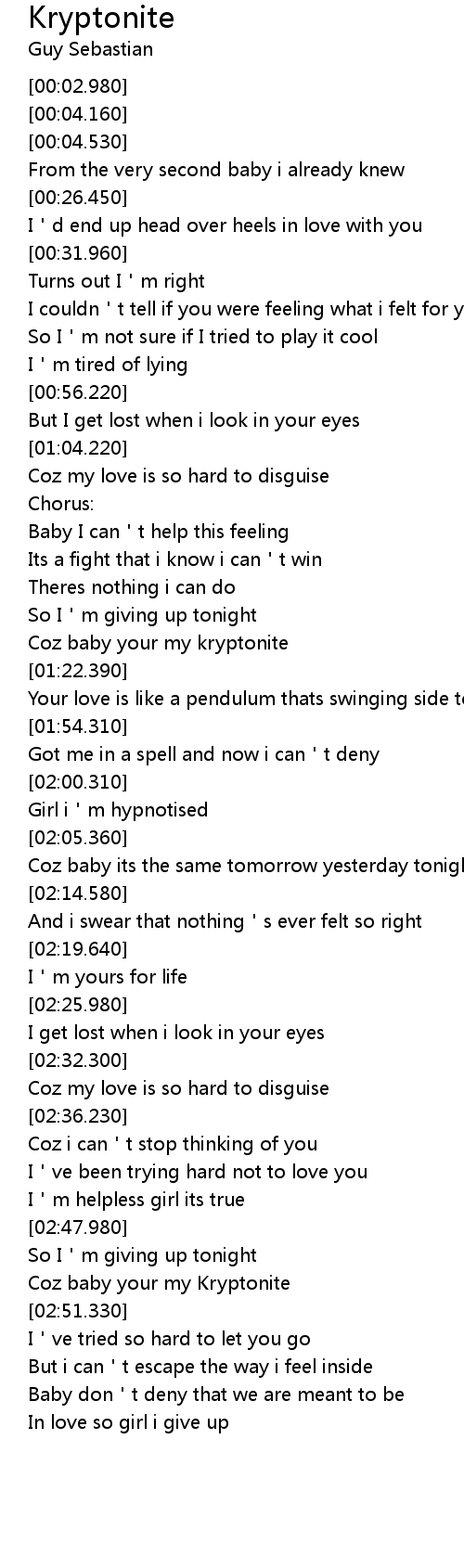 | [02:50.910] | Coz baby your my Kryptonite |