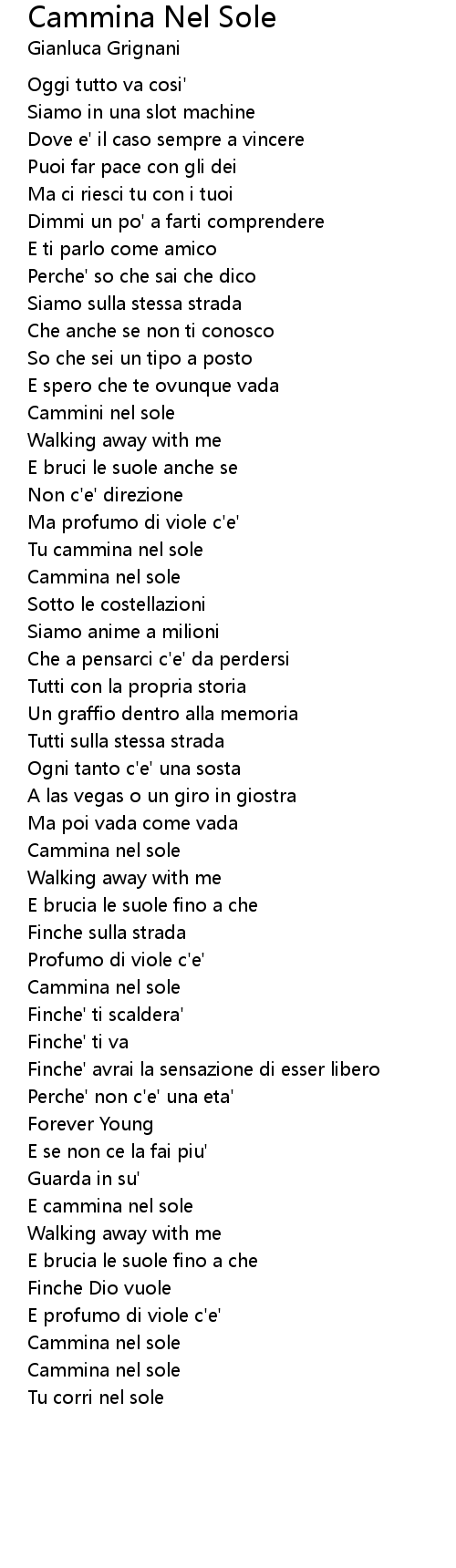 Tu cammina nel sole |