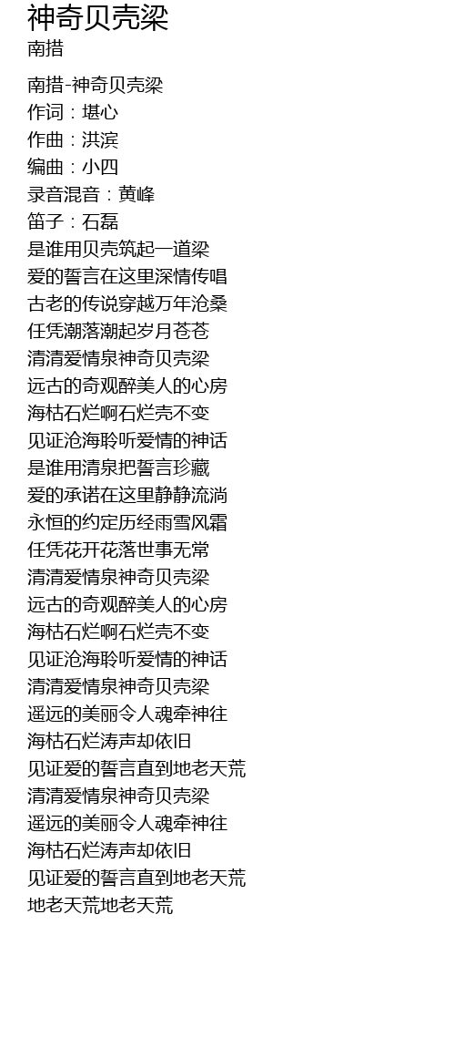 | [03:15.97] | 清清爱情泉神奇贝壳梁 |