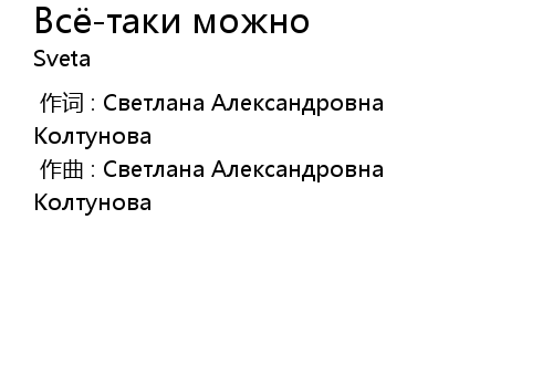 | [00:00.000] | 作词 : Светлана Александровна Колтунова |