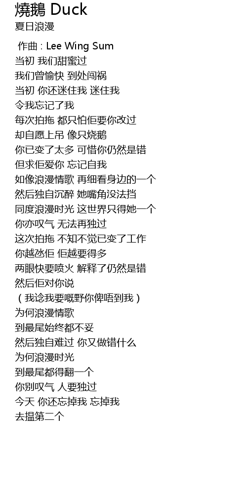| Song | 燒鵝 Duck |