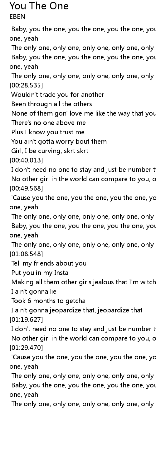 Baby, you the one, you the one, you the one, you the one, you the one, yeah |