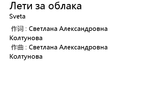 | [00:00.000] | 作词 : Светлана Александровна Колтунова |