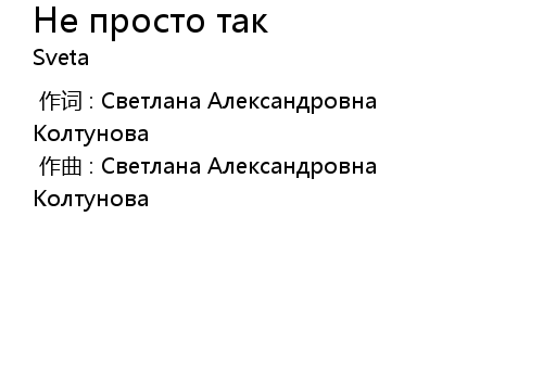 | [00:00.000] | 作词 : Светлана Александровна Колтунова |