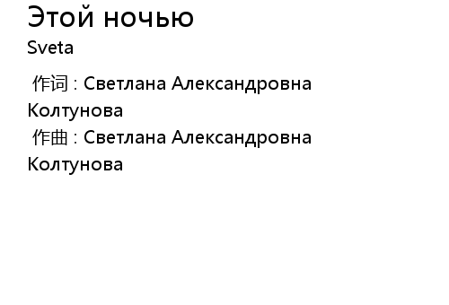 | [00:00.000] | 作词 : Светлана Александровна Колтунова |