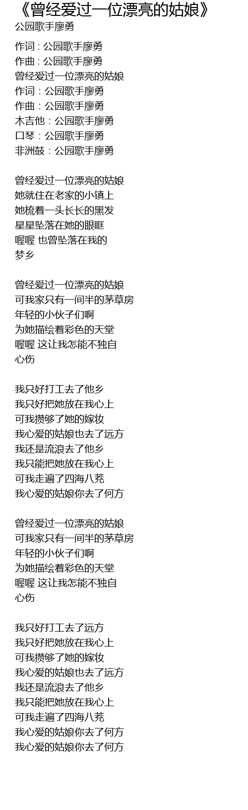 | 作词 : 公园歌手廖勇 | |