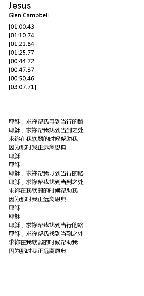 | [02:31.59][01:00.43][00:10.71] | Jesus, help me find my proper place |