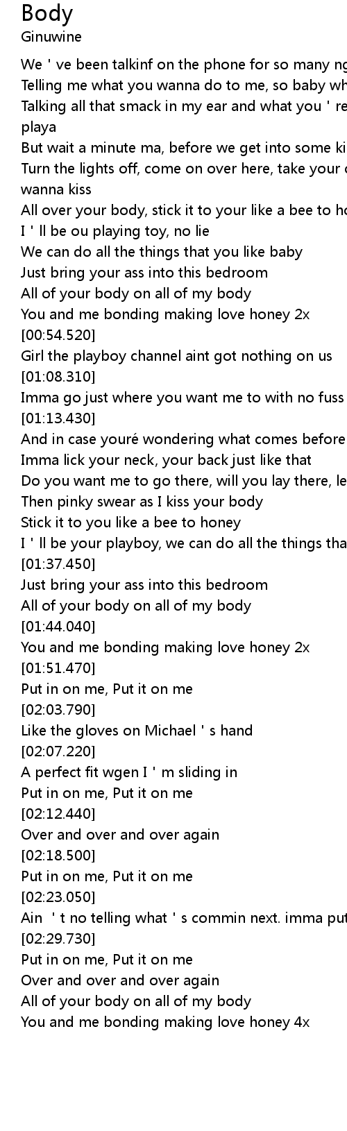 | [01:23.410] | Do you want me to go there, will you lay there, lemme taste there |