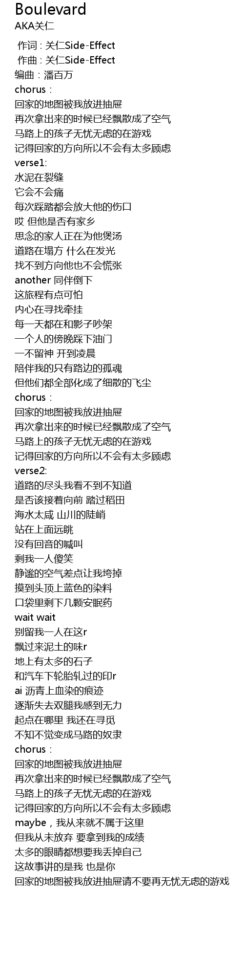| [00:00.000] | 作词 : 关仁Side-Effect |