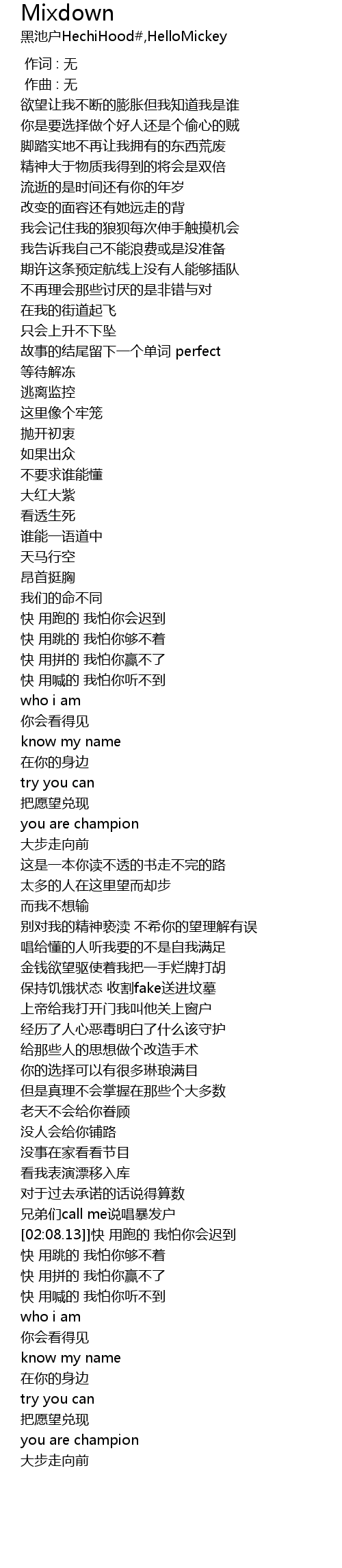 | [01:38.61] | 保持饥饿状态 收割fake送进坟墓 |