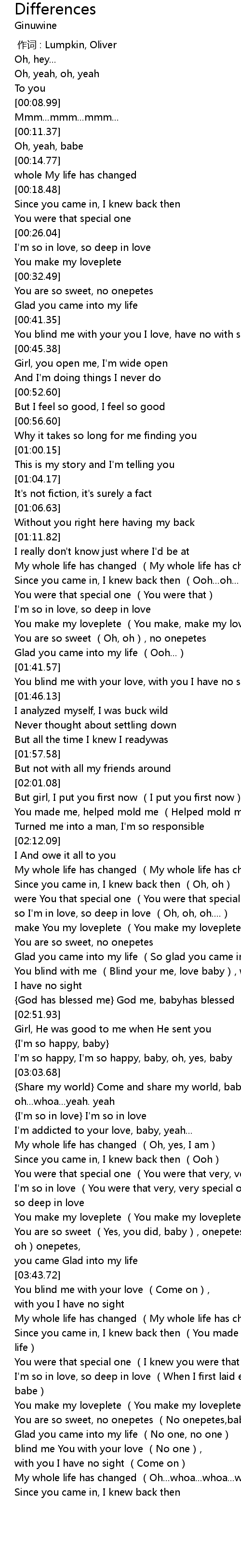 | [03:38.08] | You are so sweet Yes, you did, baby, onepetes No no oh onepetes, |