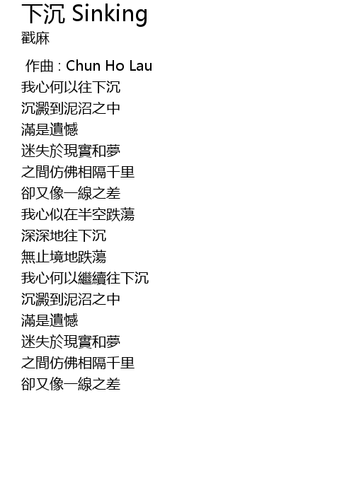 | [00:00.000] | zuo qu : Chun Ho Lau |