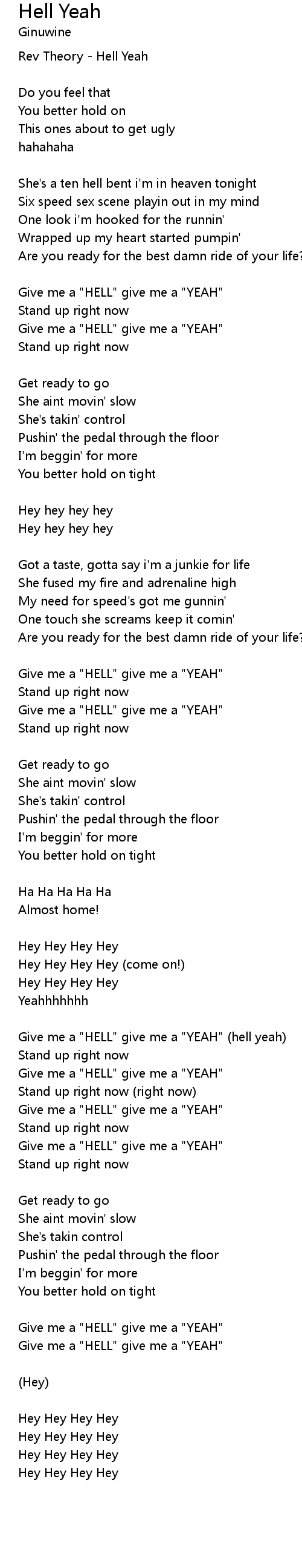 Give me a "HELL" give me a "YEAH" |