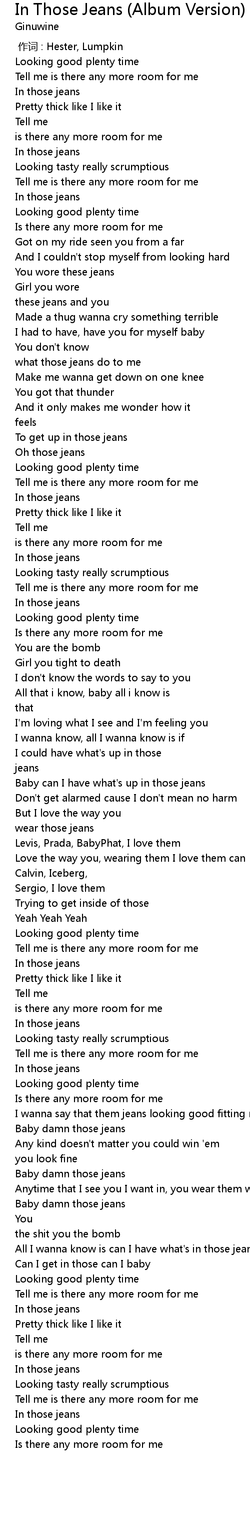 | [01:04.49] | To get up in those jeans |