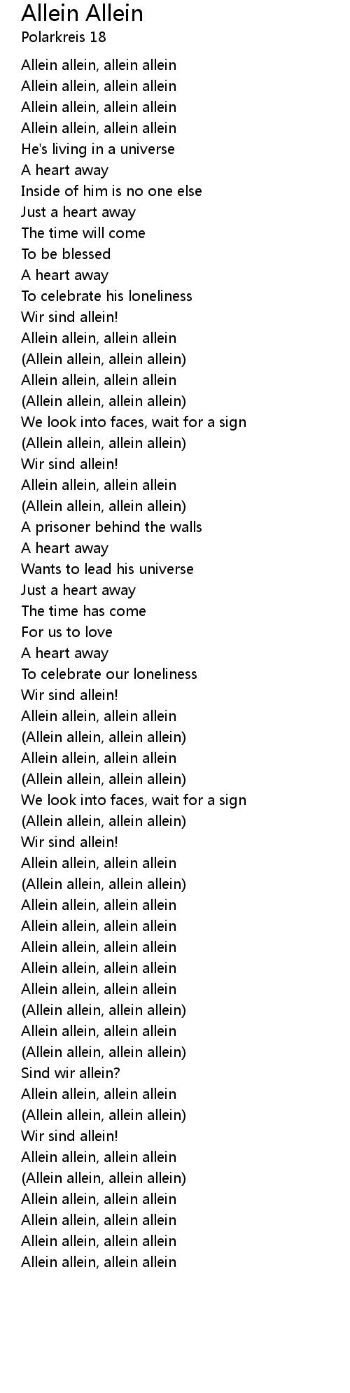 (Allein allein, allein allein) |