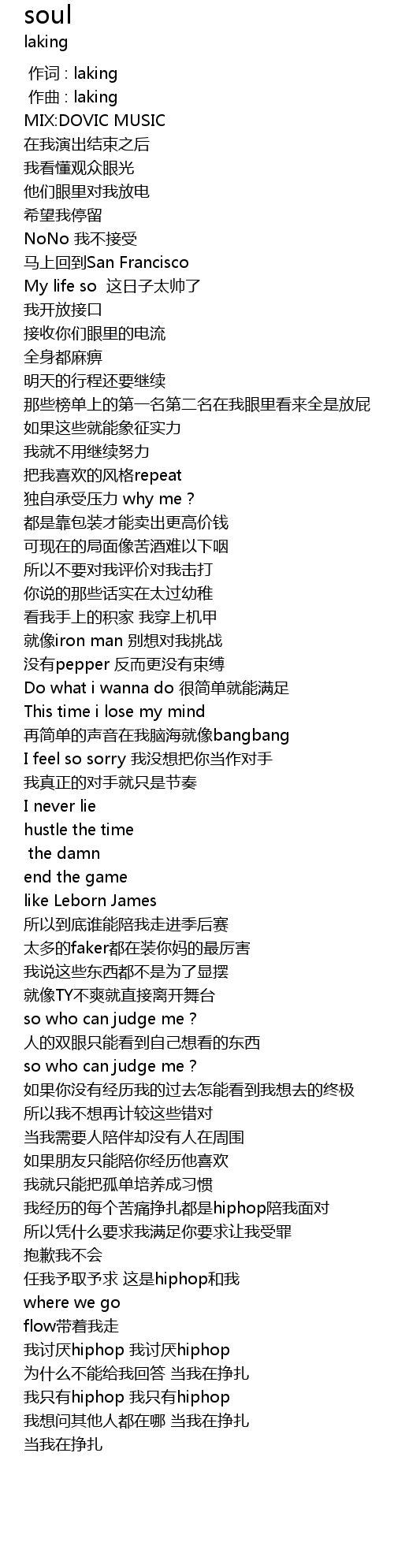 | [01:40.497] | 太多的faker都在装你妈的最厉害 |