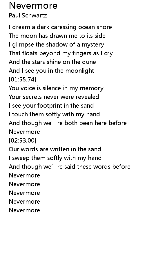 | [01:00.12] | I dream a dark caressing ocean shore |