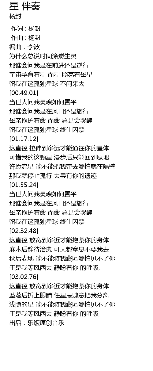 | [03:43.33] | 出品:乐饭原创音乐 |