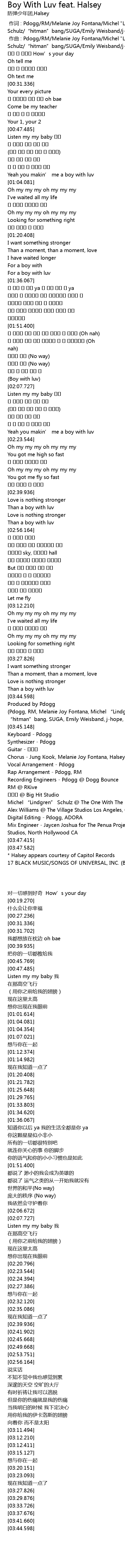 | [03:45.798] | Chorus Jung Kook, Melanie Joy Fontana, Halsey |