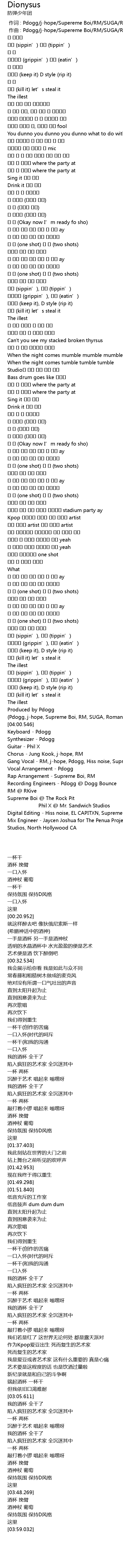 | [04:01.194] | Gang Vocal RM, jhope, Pdogg, Hiss noise, Supreme Boi |