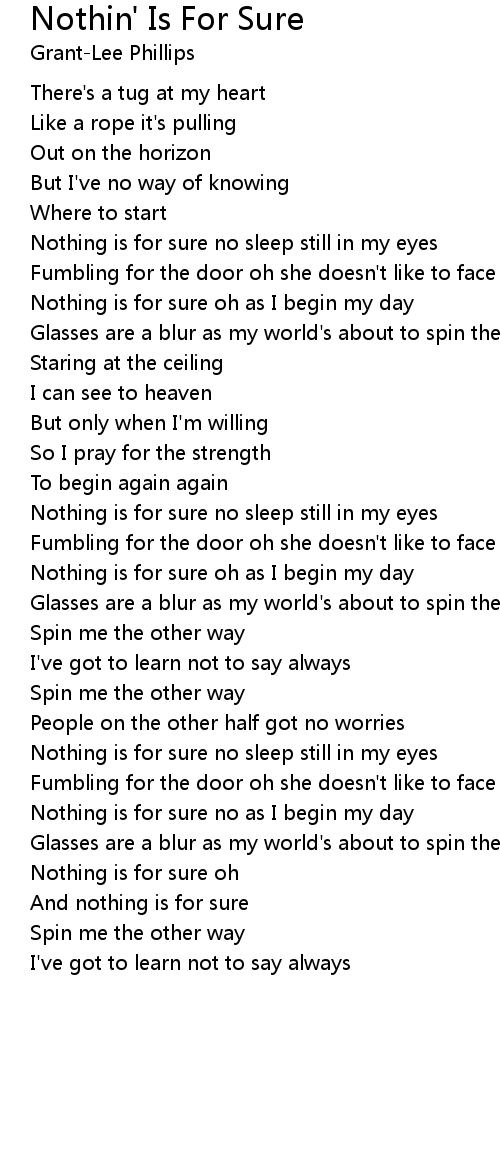 Nothing is for sure oh as I begin my day |