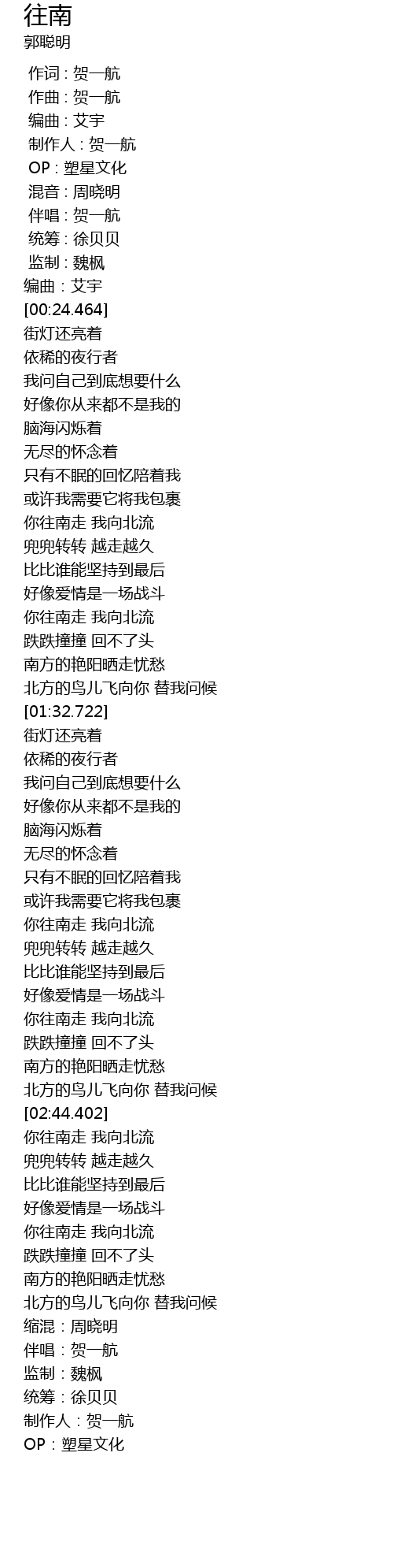 | [00:56.124] | nǐ wǎng nán zǒu wǒ xiàng běi liú |