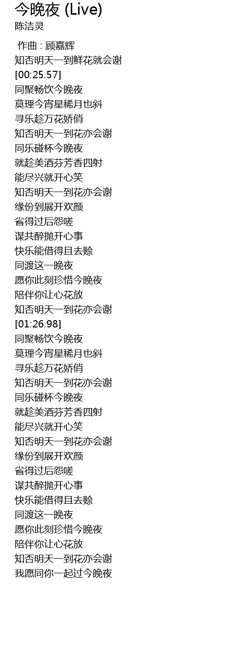 | [02:25.11] | 愿你此刻珍惜今晚夜 |