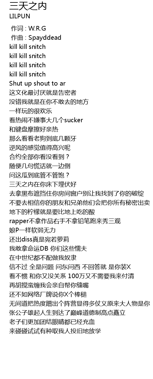 | [00:43.456] | 三天之内在你床下埋伏好 |