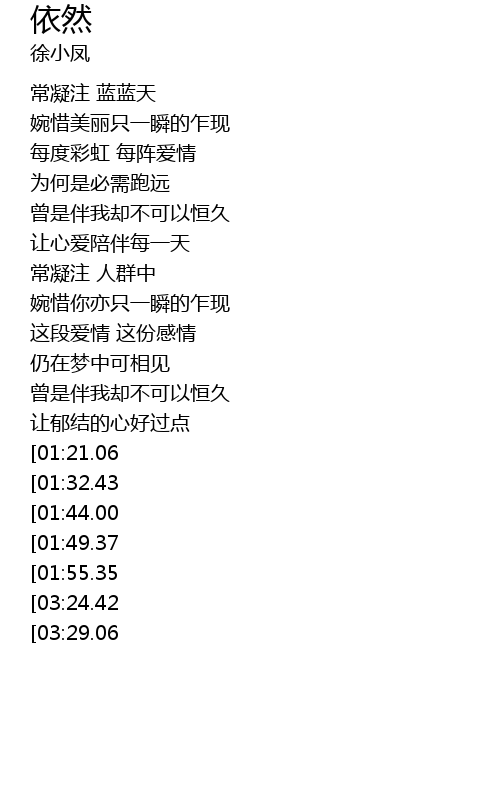 | [03:40.06][03:29.06][02:06.85] | 心里仍为你痴痴永不变 |