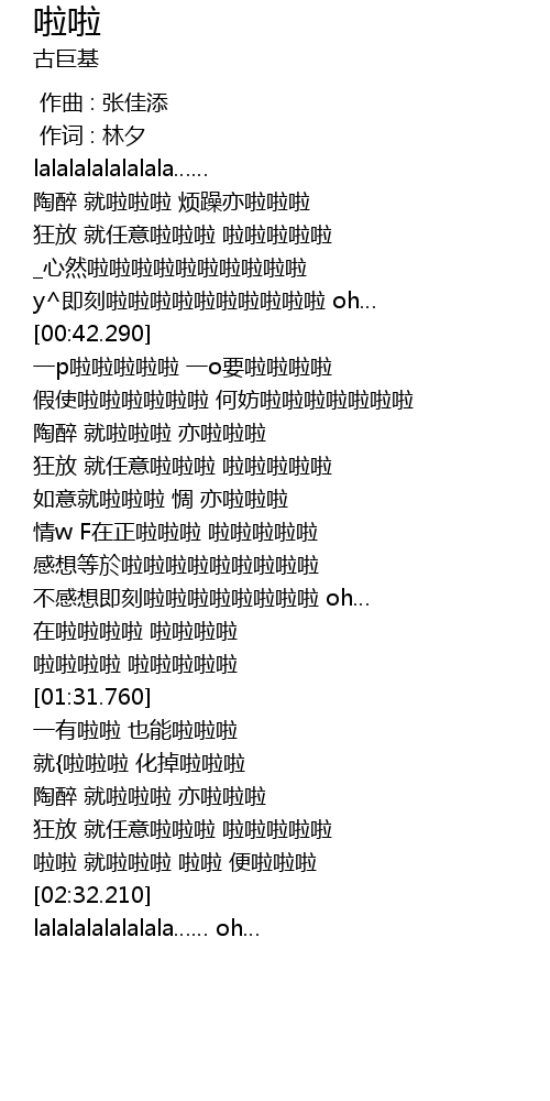 | [02:23.160] | 啦啦 就啦啦啦 啦啦 便啦啦啦 |