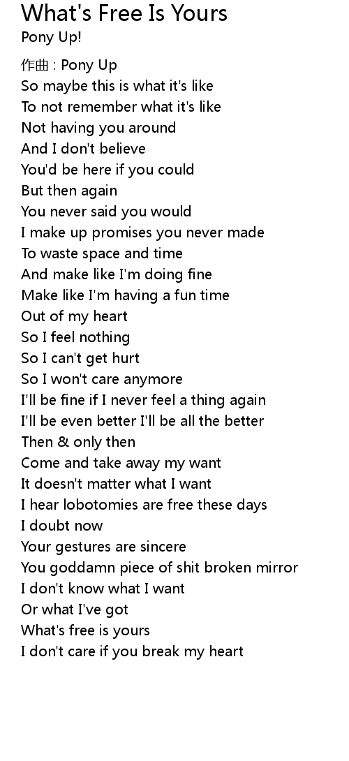 | Song | What's Free Is Yours |