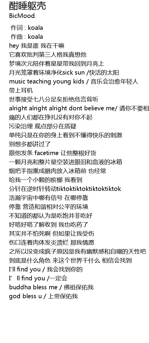 | [02:11.163] | god bless u / 上帝保佑我 |
