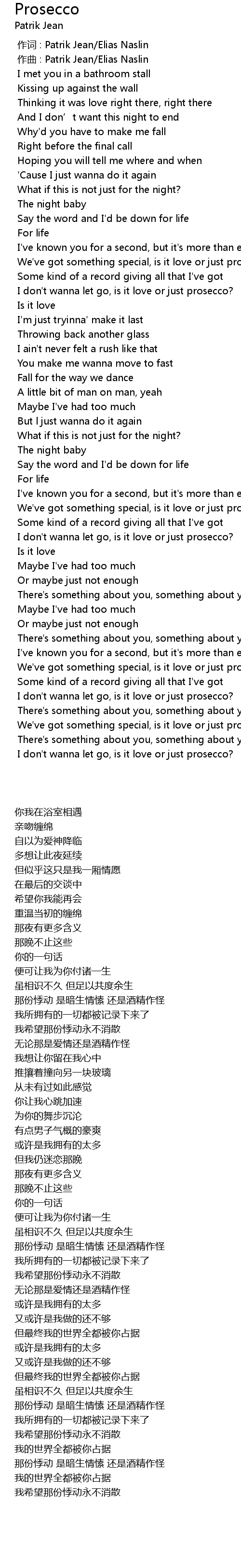 | [03:07.746] | I don' t wanna let go, is it love or just prosecco? |