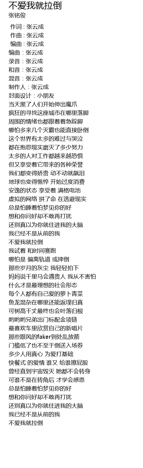 | [01:00.363] | bù ài wǒ jiù lā dǎo |