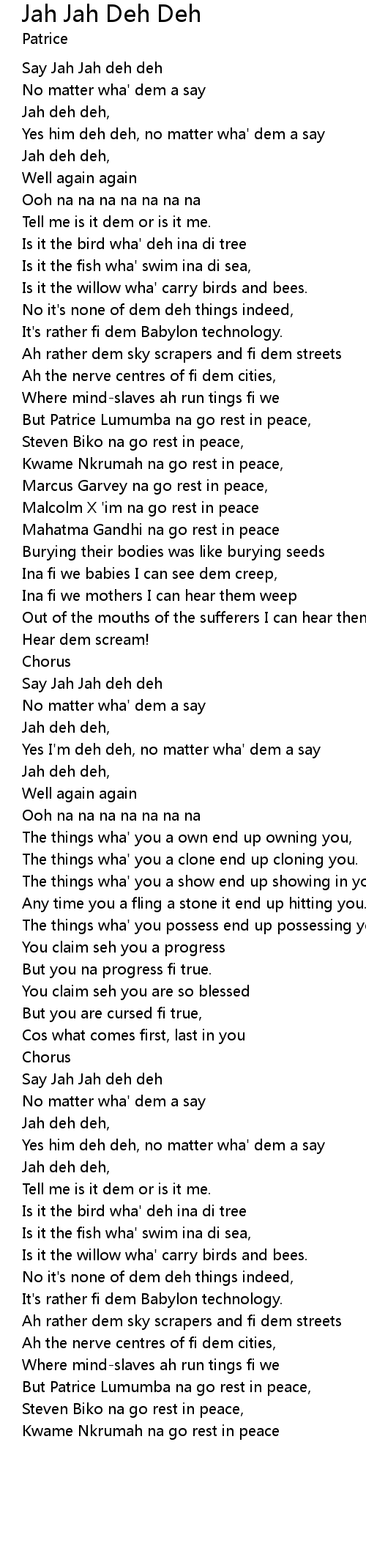 Jah deh deh, |