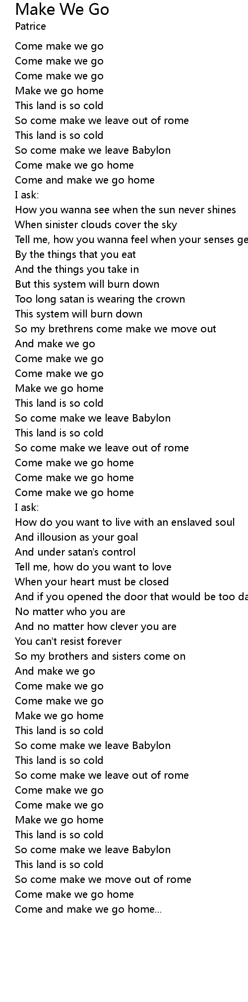So come make we leave Babylon |