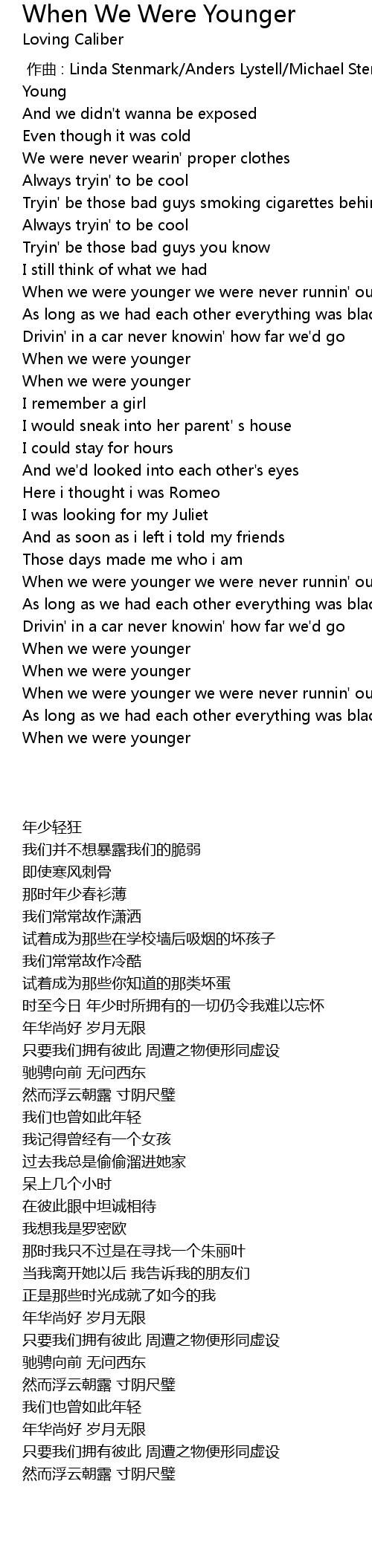 | [00:49.39] | When we were younger we were never runnin' out of time |