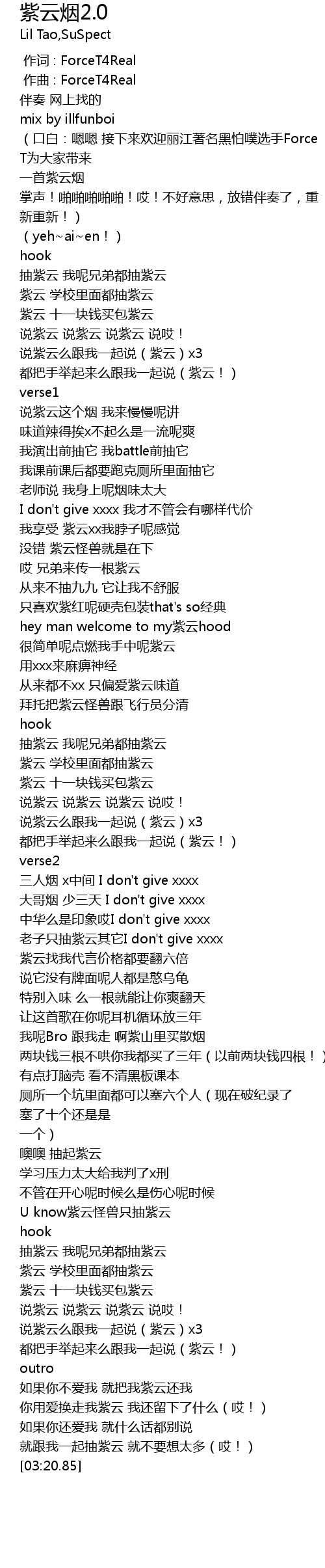| [02:02.76] | 老子只抽紫云其它I don't give xxxx |