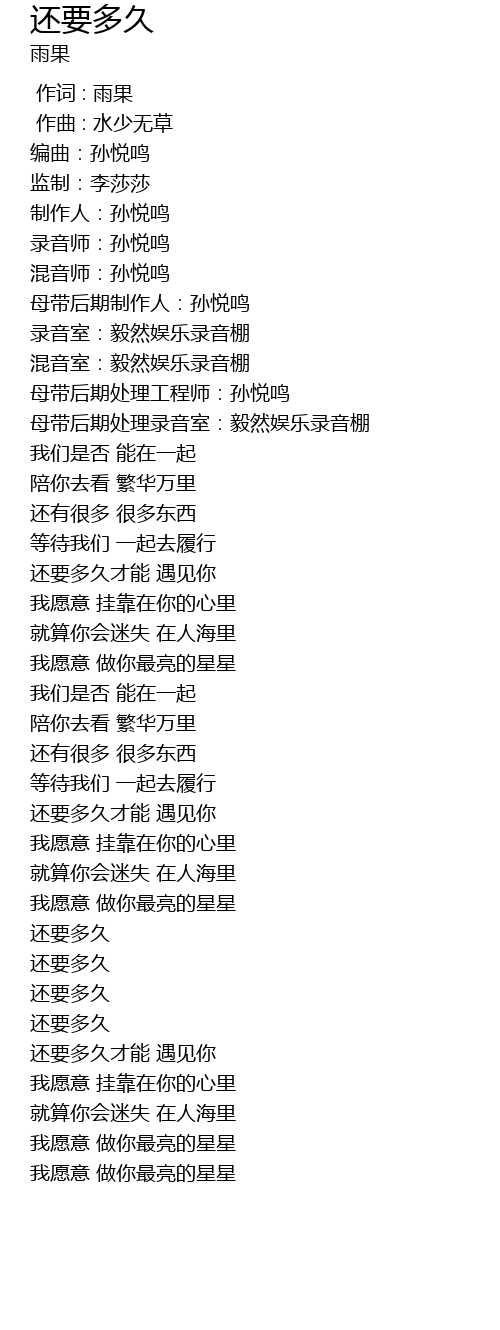 | [00:18.277] | 母带后期处理工程师:孙悦鸣 |