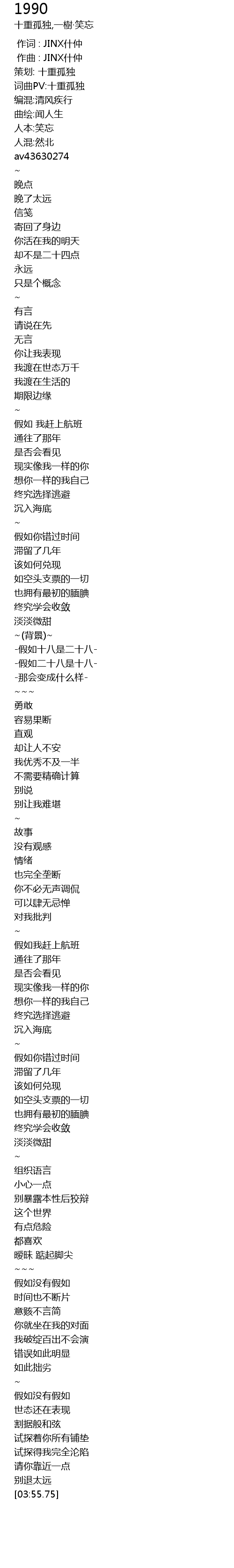 | [00:00.000] | 作词 : JINX什仲 |