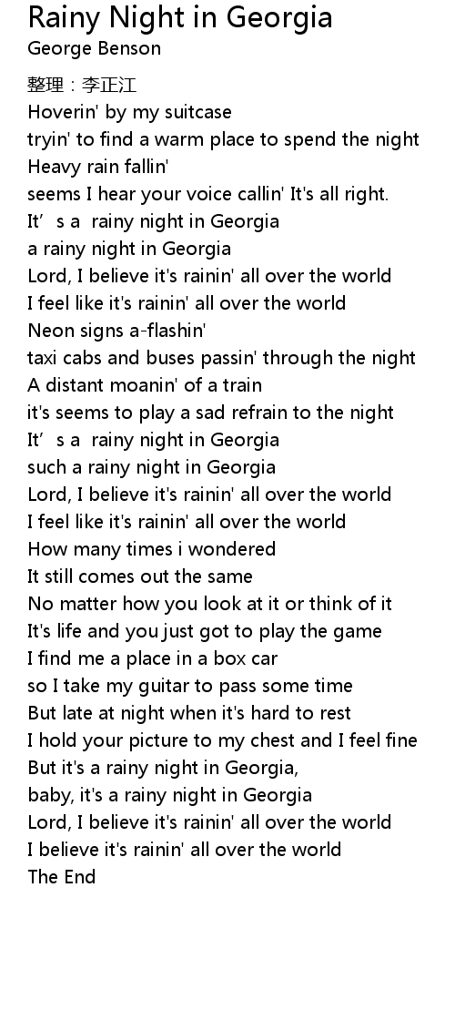 | [03:45.65] | baby, it's a rainy night in Georgia |