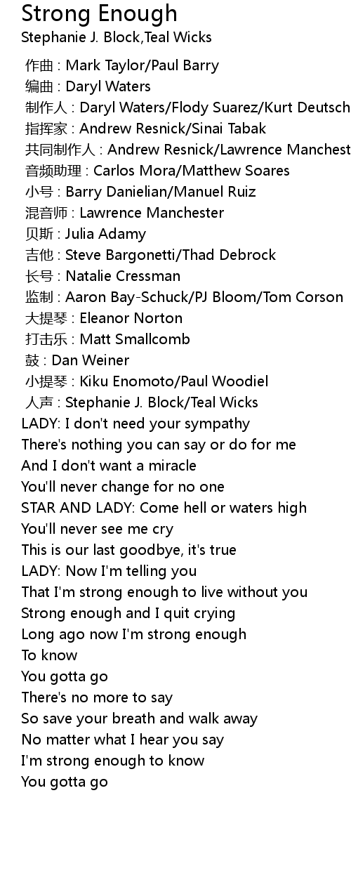 | [00:07.072] | 人声 : Stephanie J. Block/Teal Wicks |