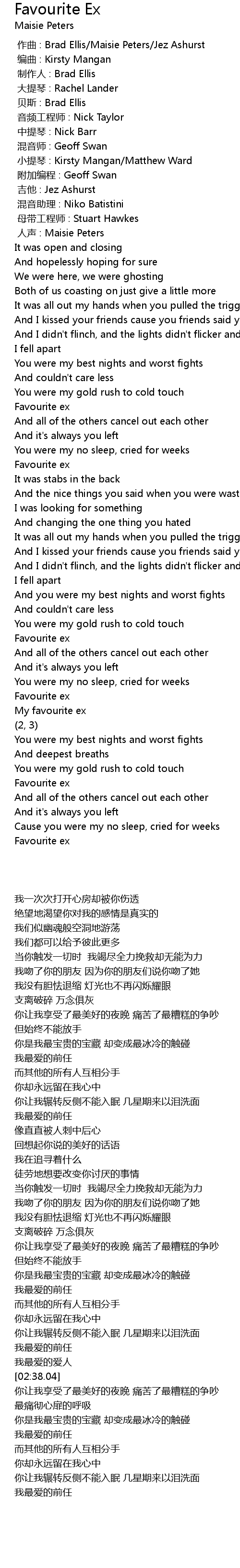 | [02:54.05] | Favourite ex |