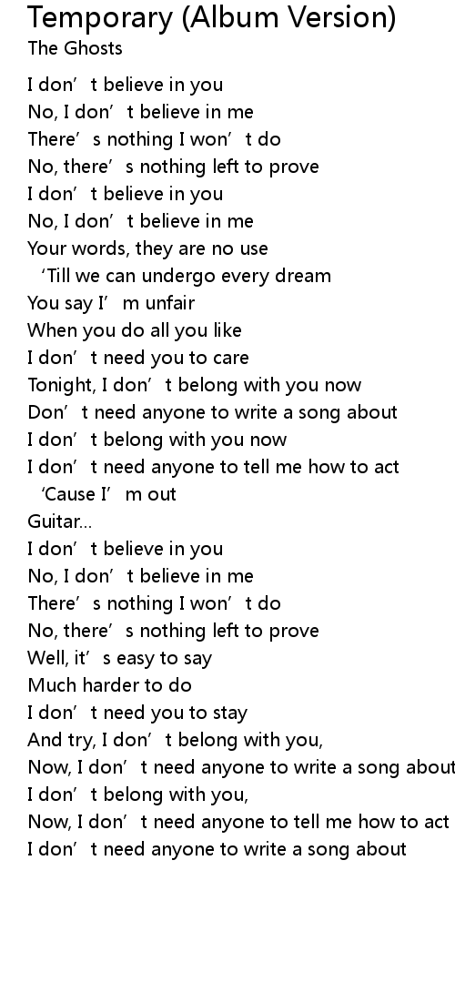 | [01:45.60] | Tonight, I don' t belong with you now |