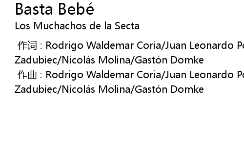 | [00:00.000] | 作词 : Rodrigo Waldemar Coria/Juan Leonardo Portela/Nicolás Zadubiec/Nicolás Molina/Gastón Domke |