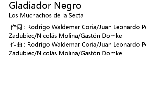 | [00:00.000] | 作词 : Rodrigo Waldemar Coria/Juan Leonardo Portela/Nicolás Zadubiec/Nicolás Molina/Gastón Domke |