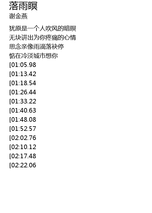 | [03:20.28][01:33.22] | 思念落雨暗暝 只有冷冷的伤悲 |